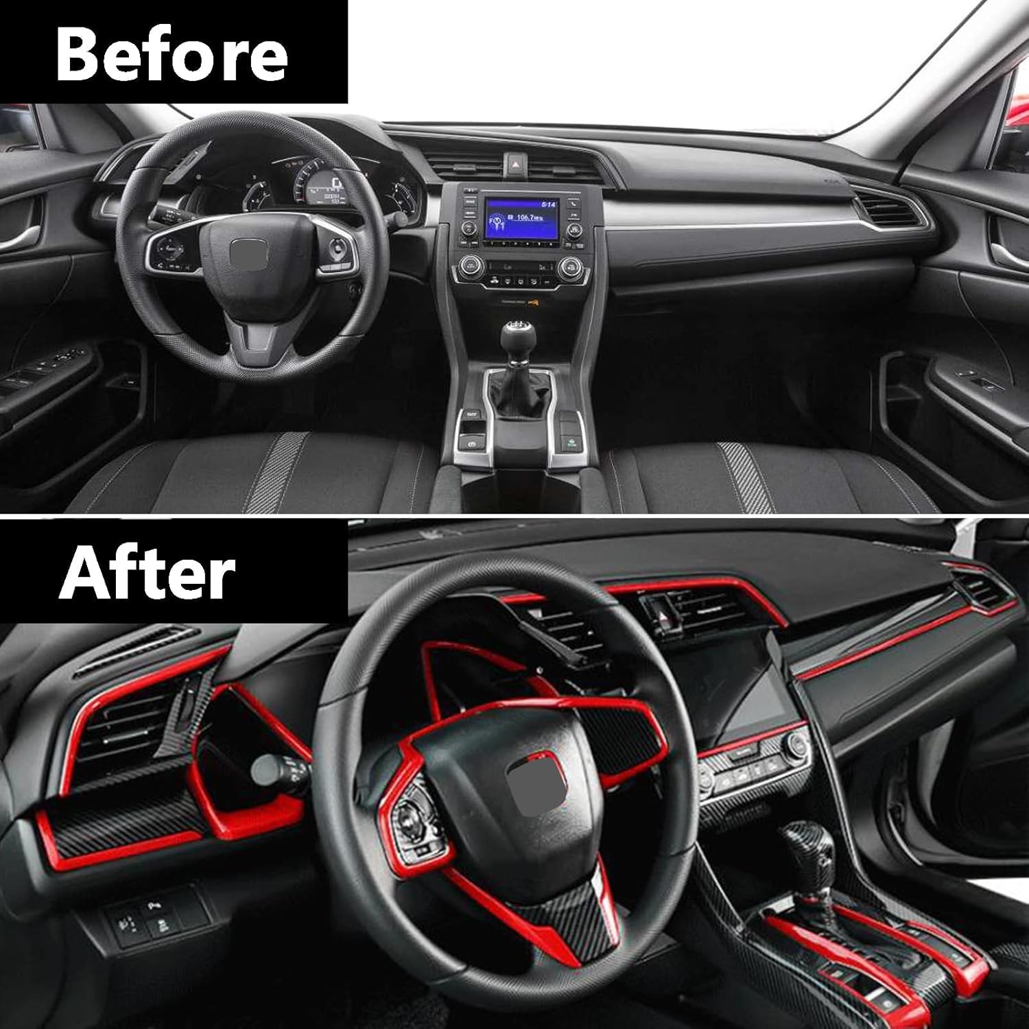 Fancemot 23 Pcs Carbon Fiber Console Center Dashboard Cover, Gear Shift Panel Cover, Steering Wheel Cover, Door Side Panel Cover Compatible with Honda Civic 10th Gen 2016-2021