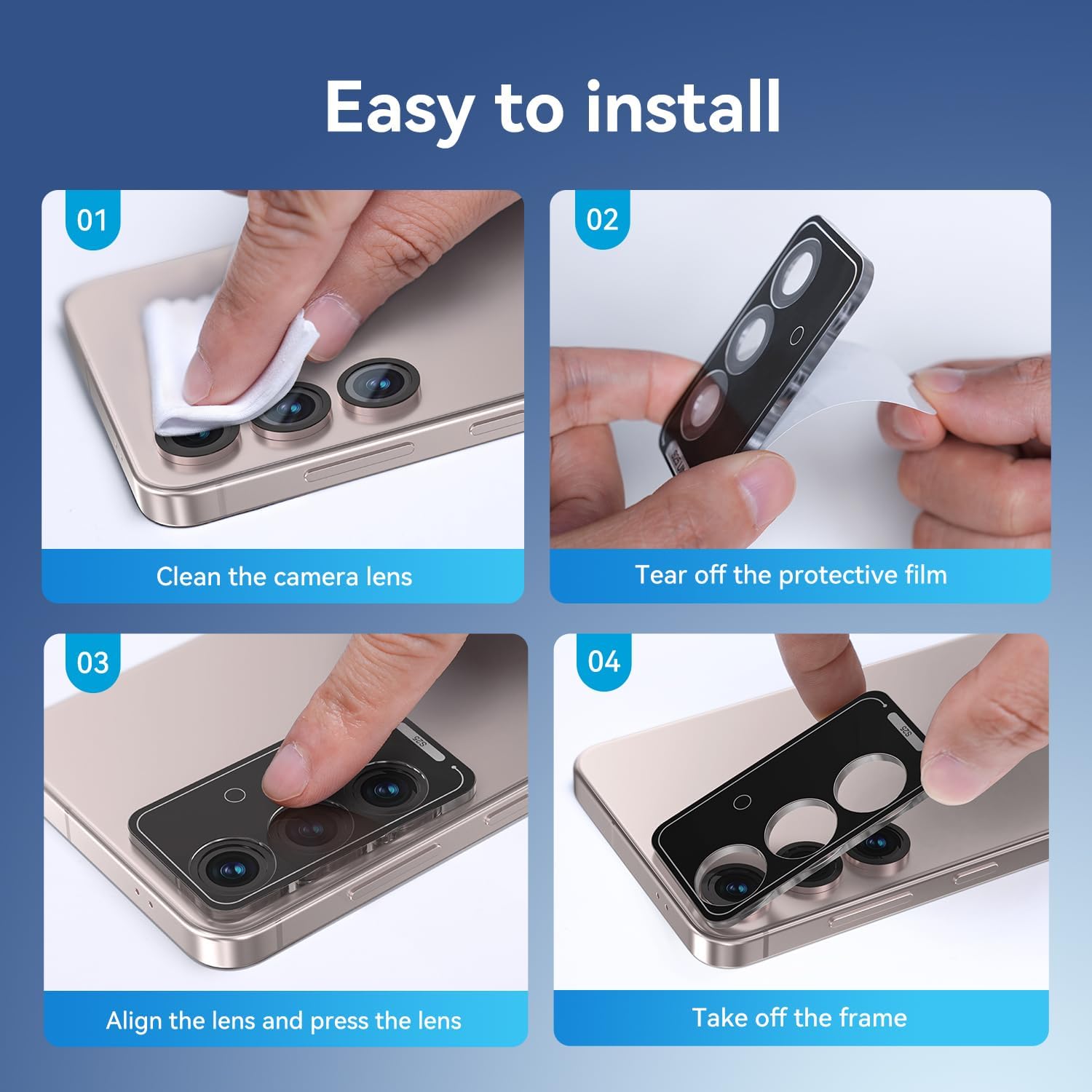 Enhance the protection of your samsung galaxy s25 plus camera lens with our premium lens protector. Specifically designed to preserve the original image quality, this easy-to-install s25 plus camera lens protector also provides military-grade shatterproof protection. Its precision-crafted fit and robust adsorption keeps your device safe without compromising case compatibility, making it an ideal choice for you. The galaxy s25 plus camera lens protector provides superior defense against scratches, dust, and impacts. If you're looking for a reliable samsung galaxy s25 plus camera lens protector, our product delivers unmatched durability and clarity. Upgrade your device's protection with this samsung s25 plus camera lens protector to meet all your needs.