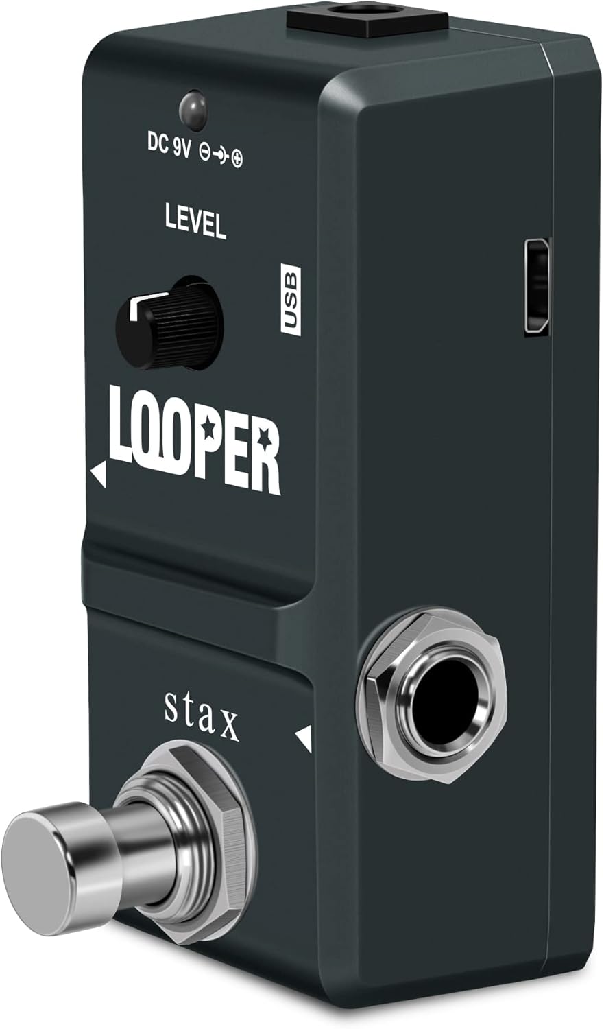 Stax Tiny Looper Pedal –Tiny Looper Electric Guitar Effect Pedal 10-Min Stereo Looper Unlimited Overdubs One-Button Control (Record/Play/Stop/Overdub/Delete) True Bypass.